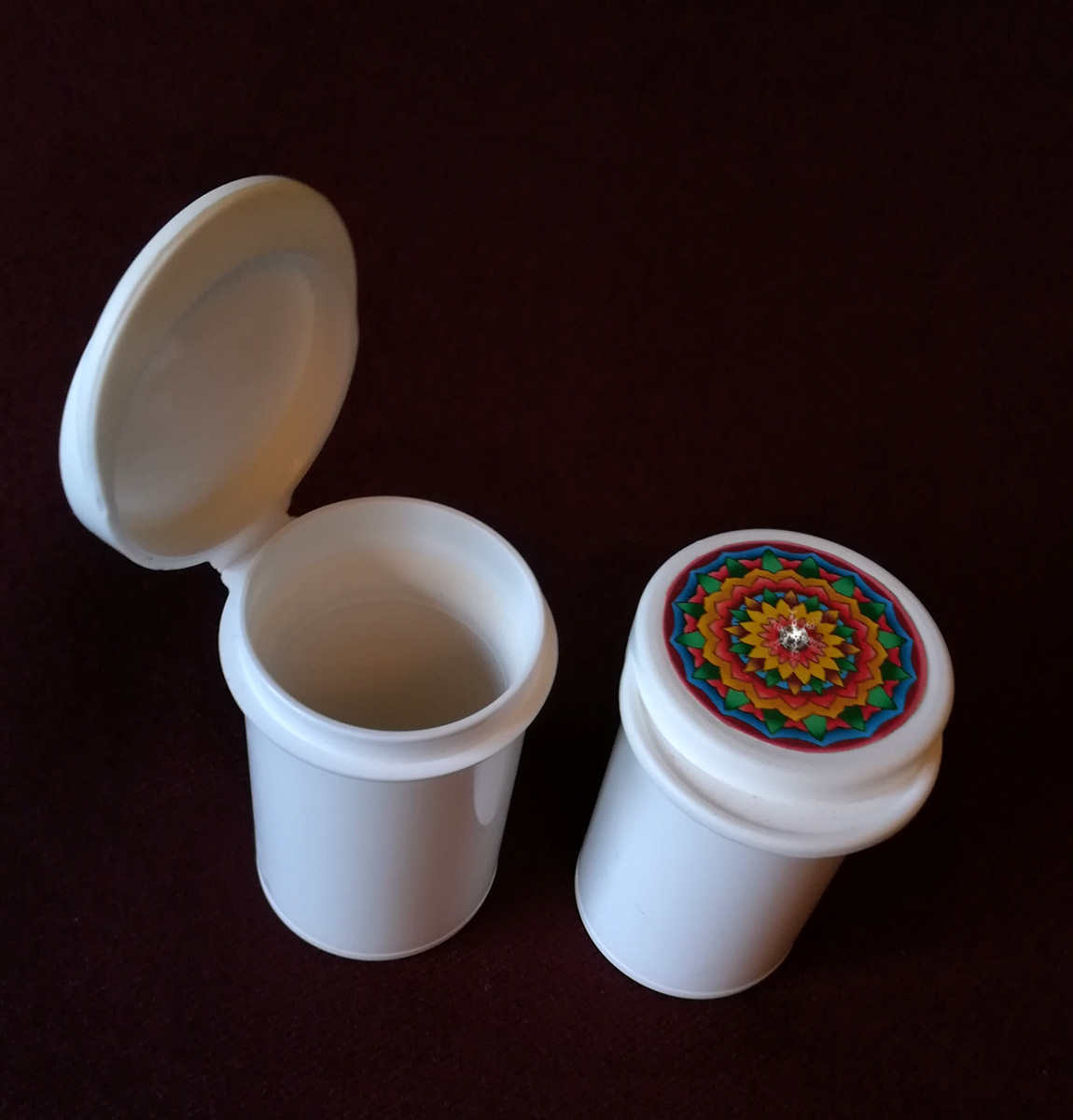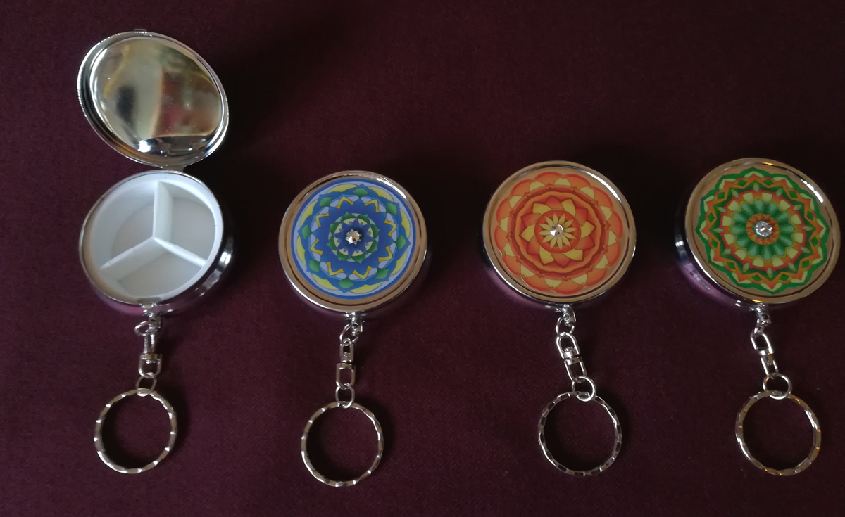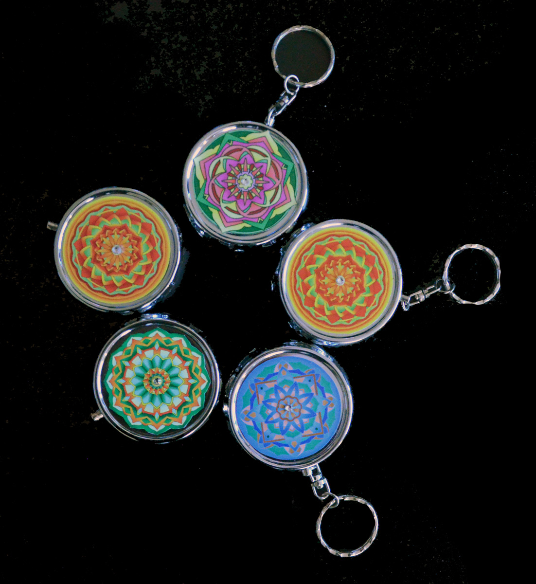 Scatoline pratiche per tutti i tipi. Tutti hanno un mandala e un "gioiello" scintillante. Cliccare sull'immagine per ingrandirla.