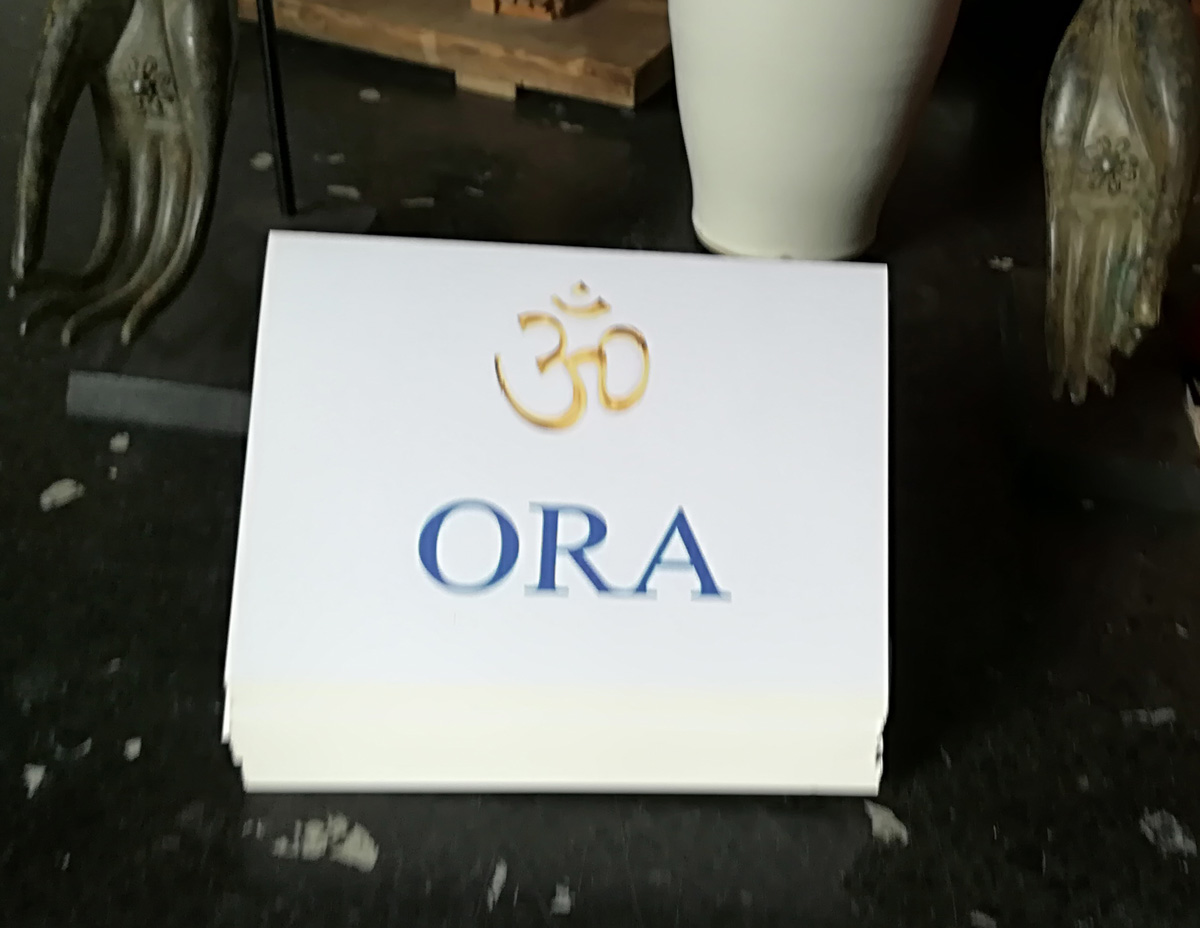 con un segno "OM" dorato,