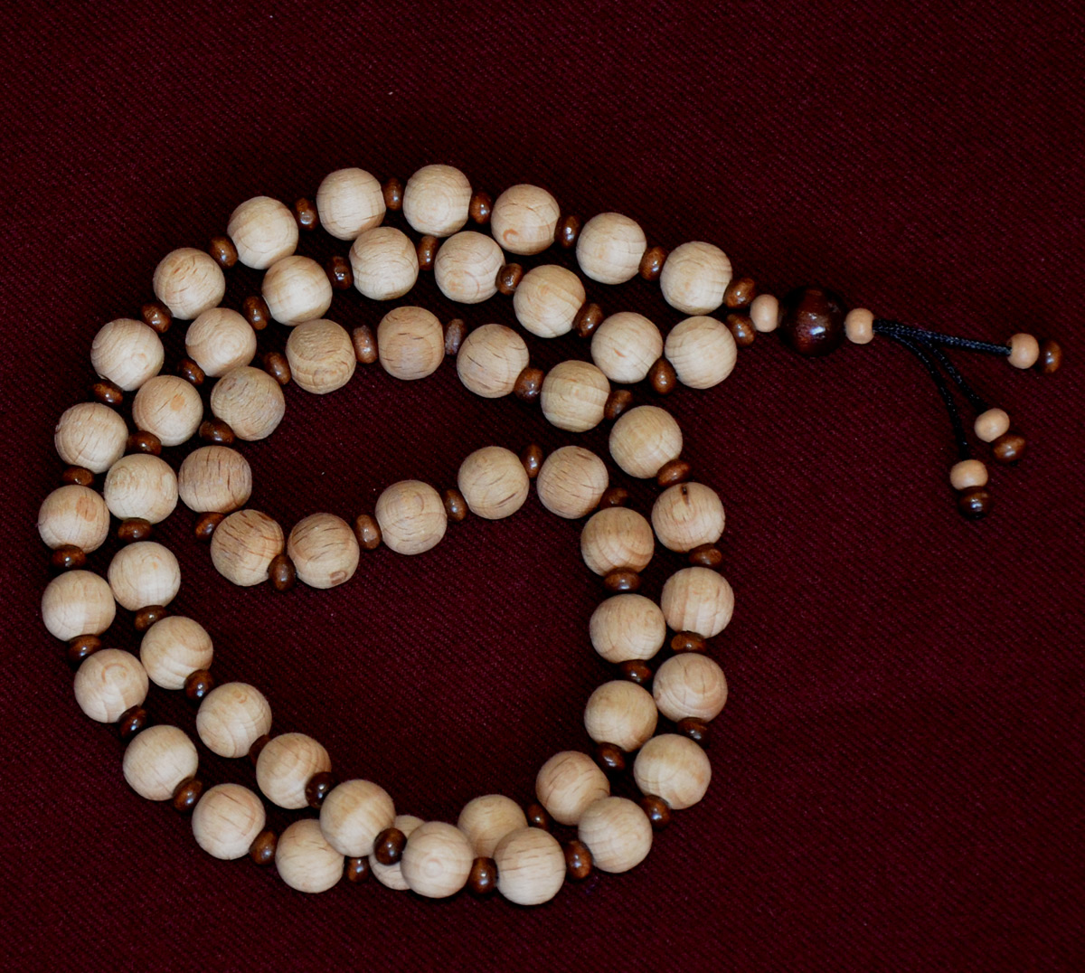 È molto lunga, 120 cm, con perline di legno, ognuna di circa 2 cm.